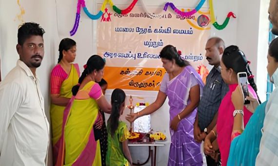 Considering the safety and welfare of the children, we searched for a place in that area. We found a vacant Amma Clinic government building. As guided by the unit staff, two Evening Study Centre teachers went to the office of the Sivakasi MLA and submitted a petition to allow the study centre to be run at the vacant Amma Clinic. A staff member from the MLA’s office informed the Ward Member of Sivakasi Municipal Corporation Kannagi Colony.